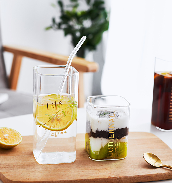 Square Alphabet Glass Cups Ice Coffee Glass Cup Stemless Wine Glasses Transparent Office Wijnglazen Glassware Drinking AC50BL